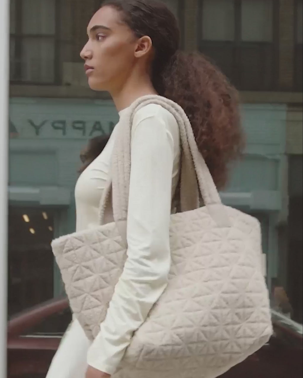 Vee Tote Medium Cream Sherpa
