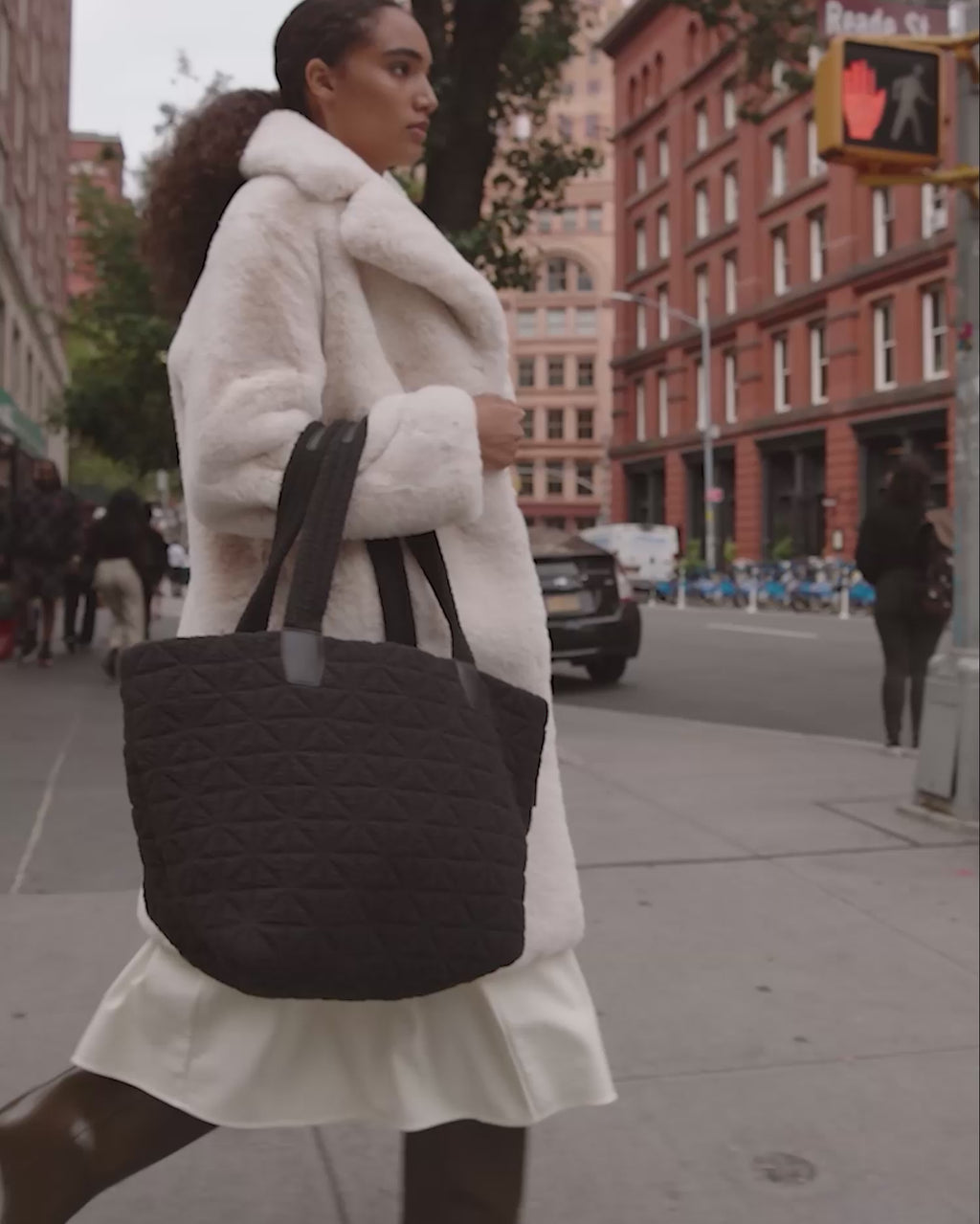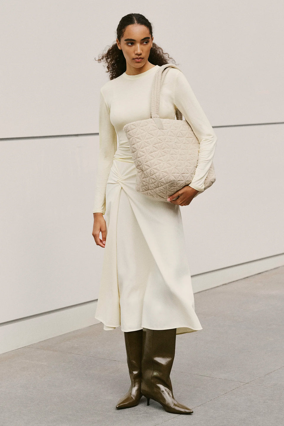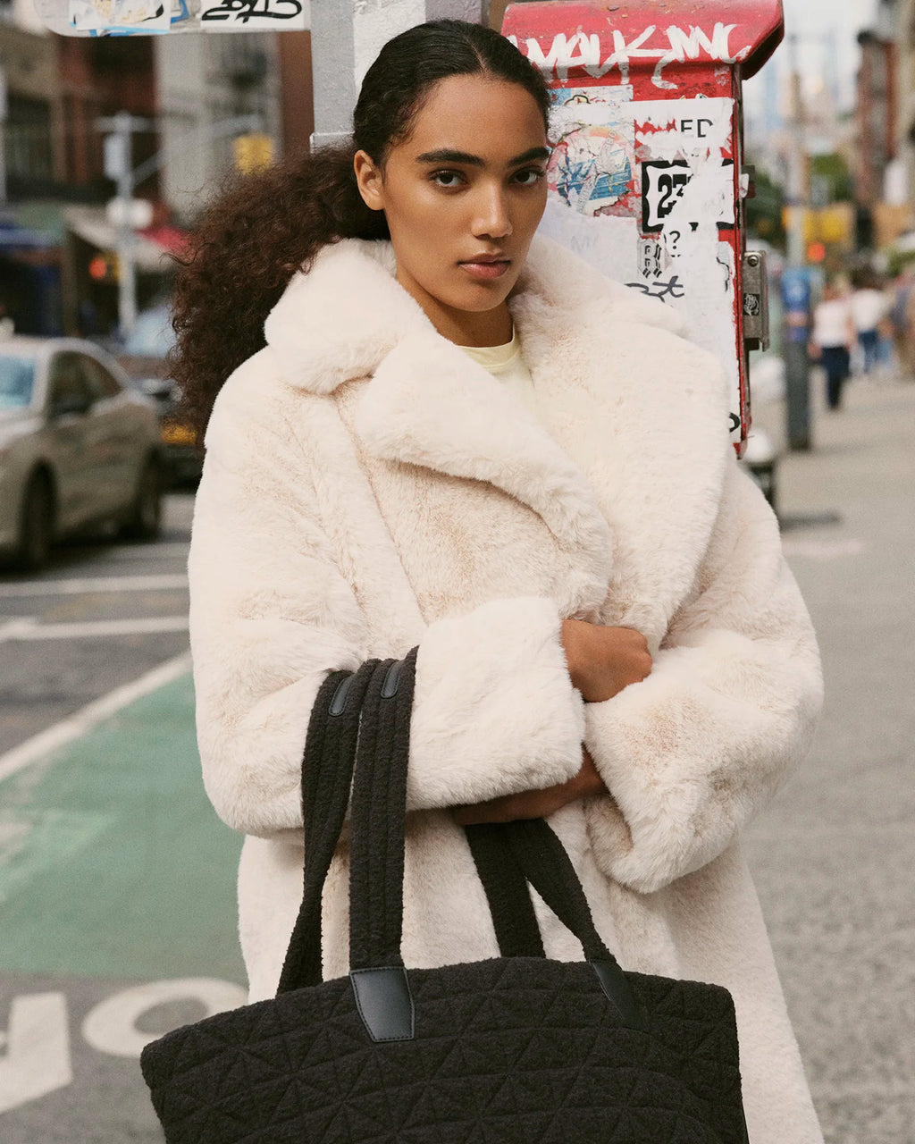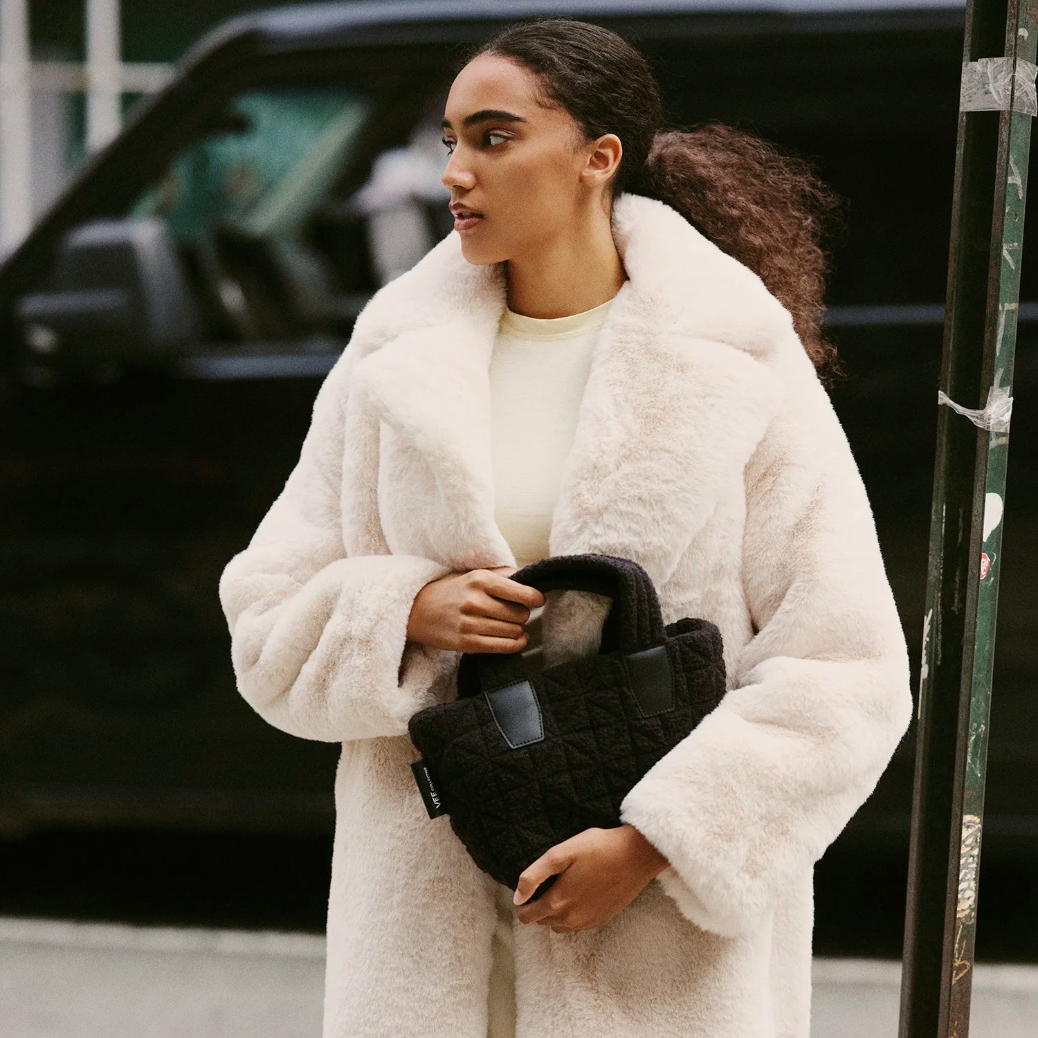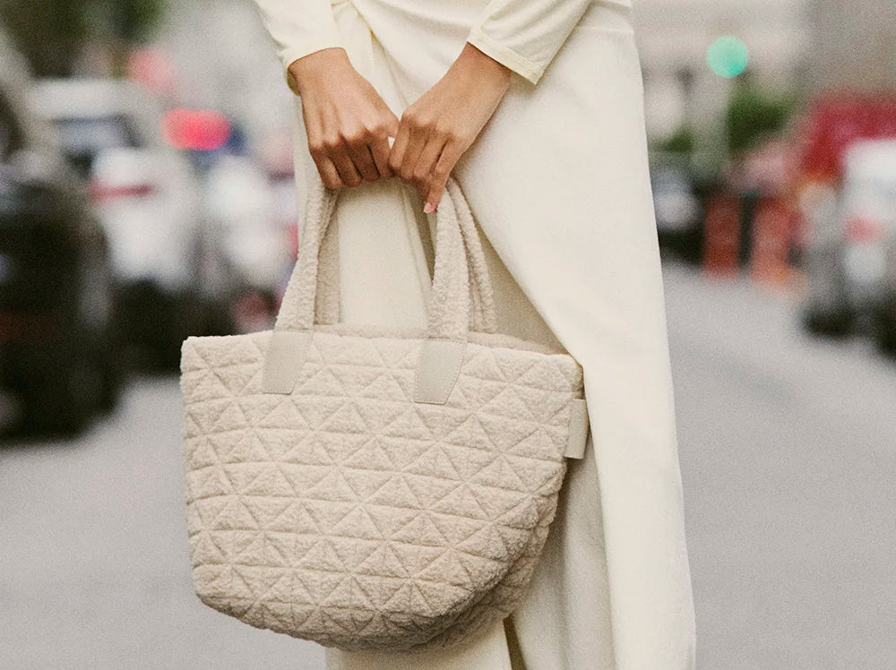 Unsere Entdeckungsreise mit neuen Materialien geht weiter – mit den Vee Sherpa Bags in Cream und Black. Das 100% recycelte Fleece-Material ist perfekt für die kälteren Monate und macht diese Tasche zu einem haptischen Statement-Piece, das für Komfort und Vielseitigkeit steht.
